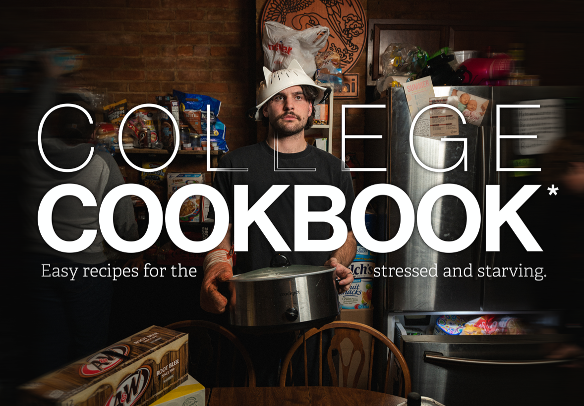 Collaborative design research, and layout design project about easy meals to prep for college students that still taste awesome.