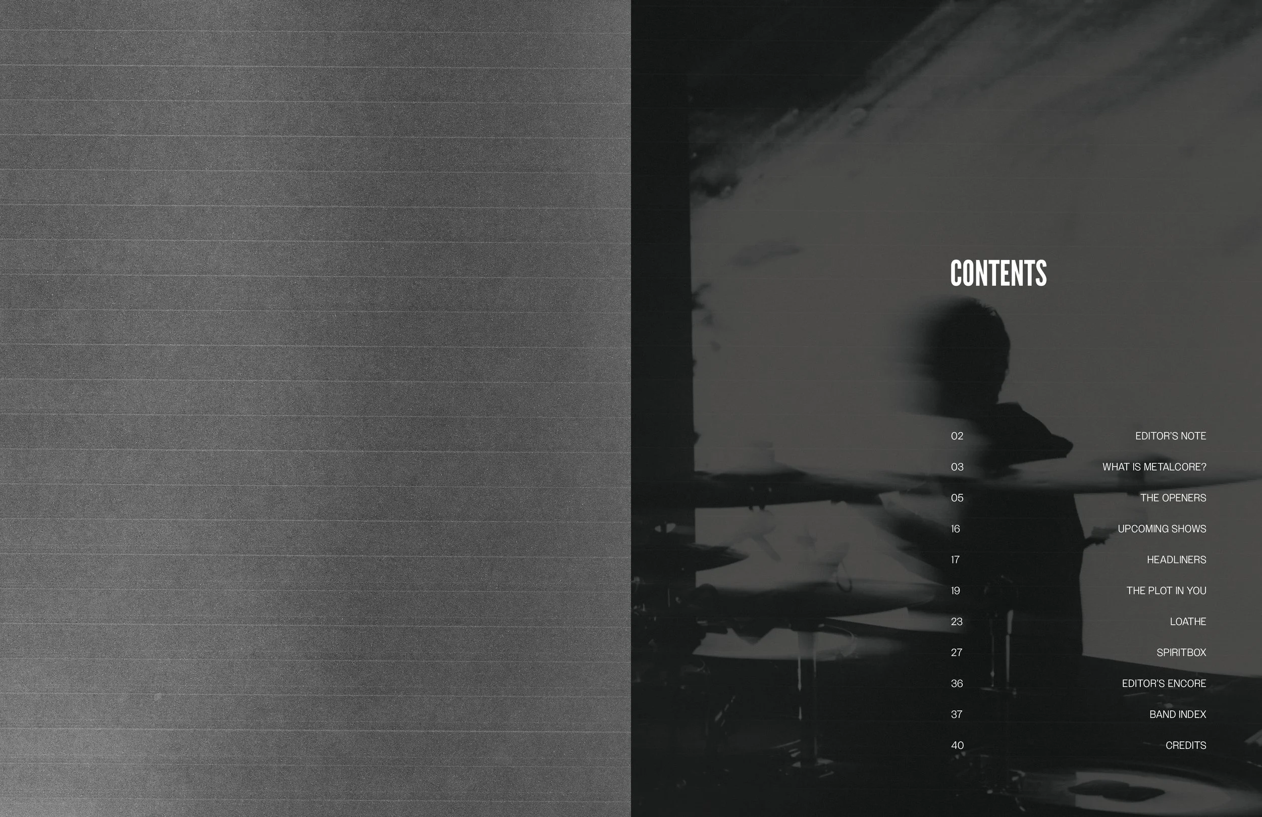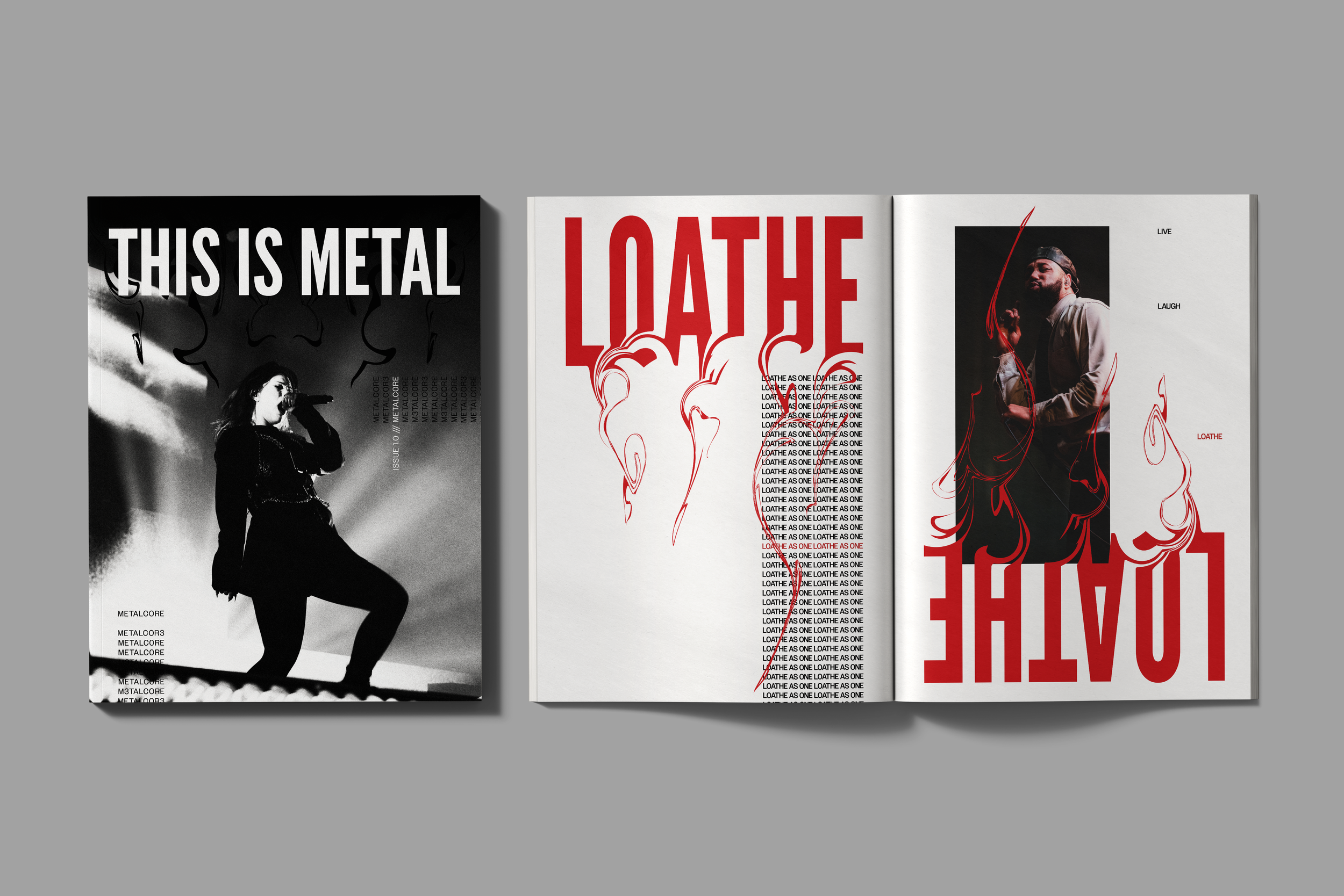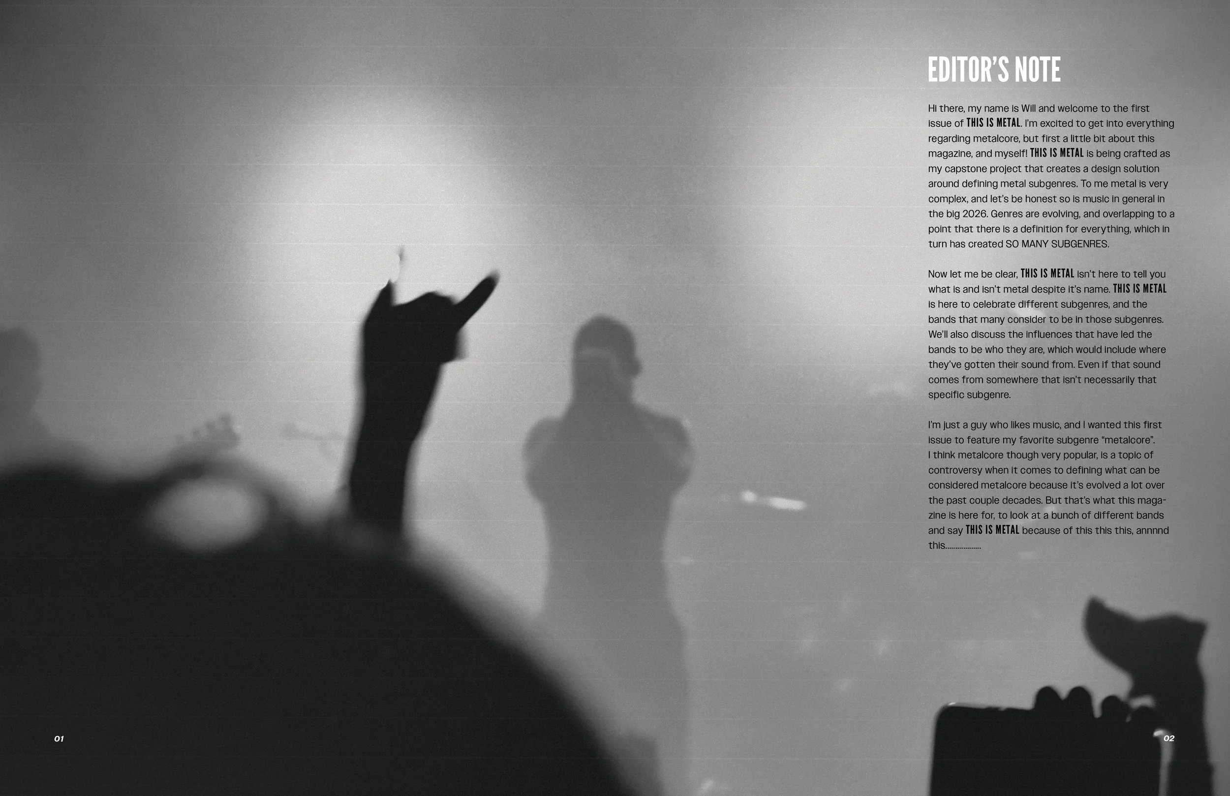 THIS IS METAL is a concept magazine I designed as my student capstone project. Each issue would focus on a different subgenre and the bands within it. The focus of the capstone was to design one full magazine, “metalcore”, along with two supplemental covers/backs to show it could be a series.